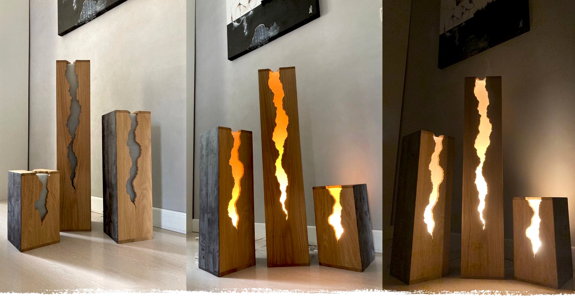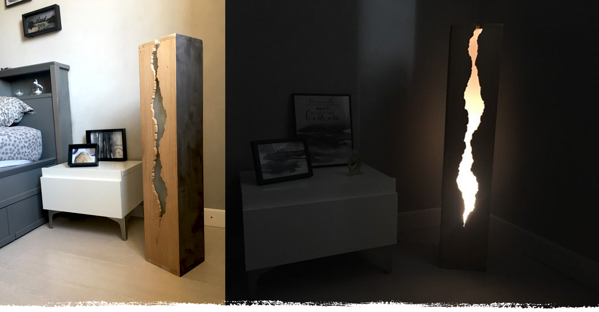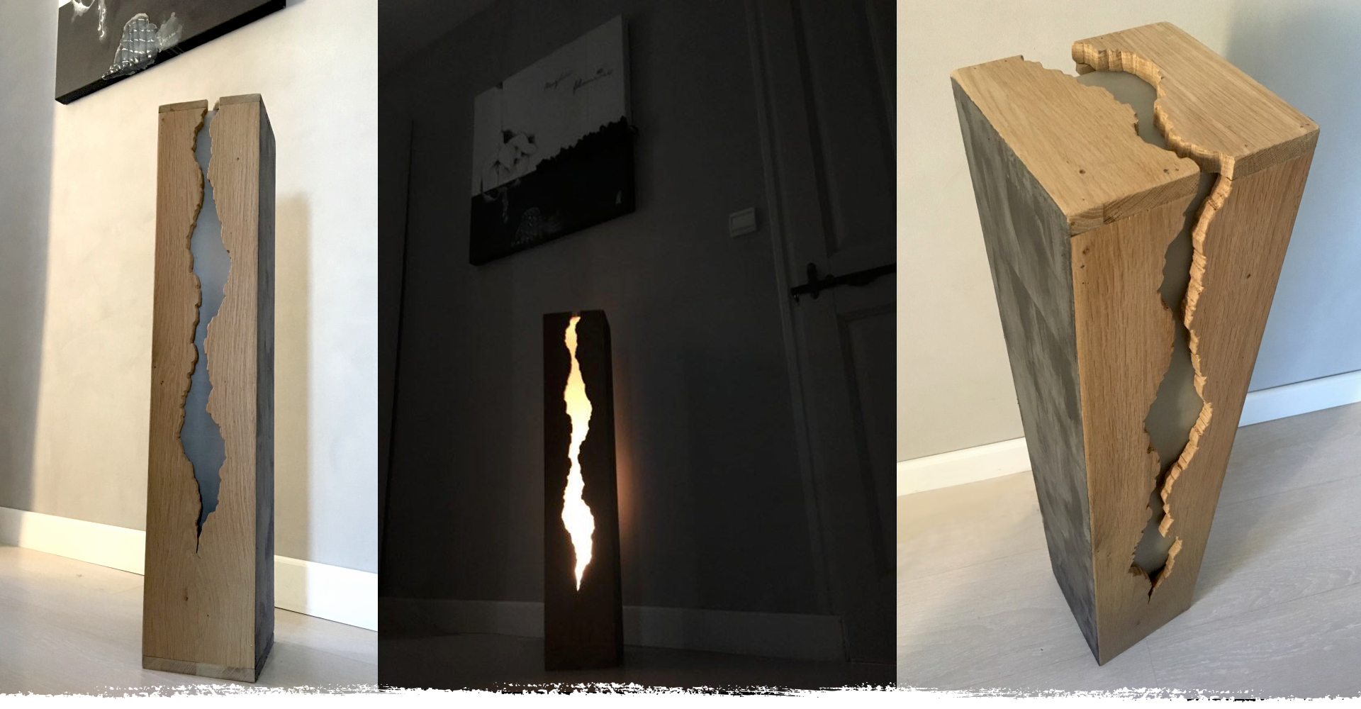 Ses lignes épurées dévoilent la craquelure dont il émane une source lumineuse cosy et apaisante.