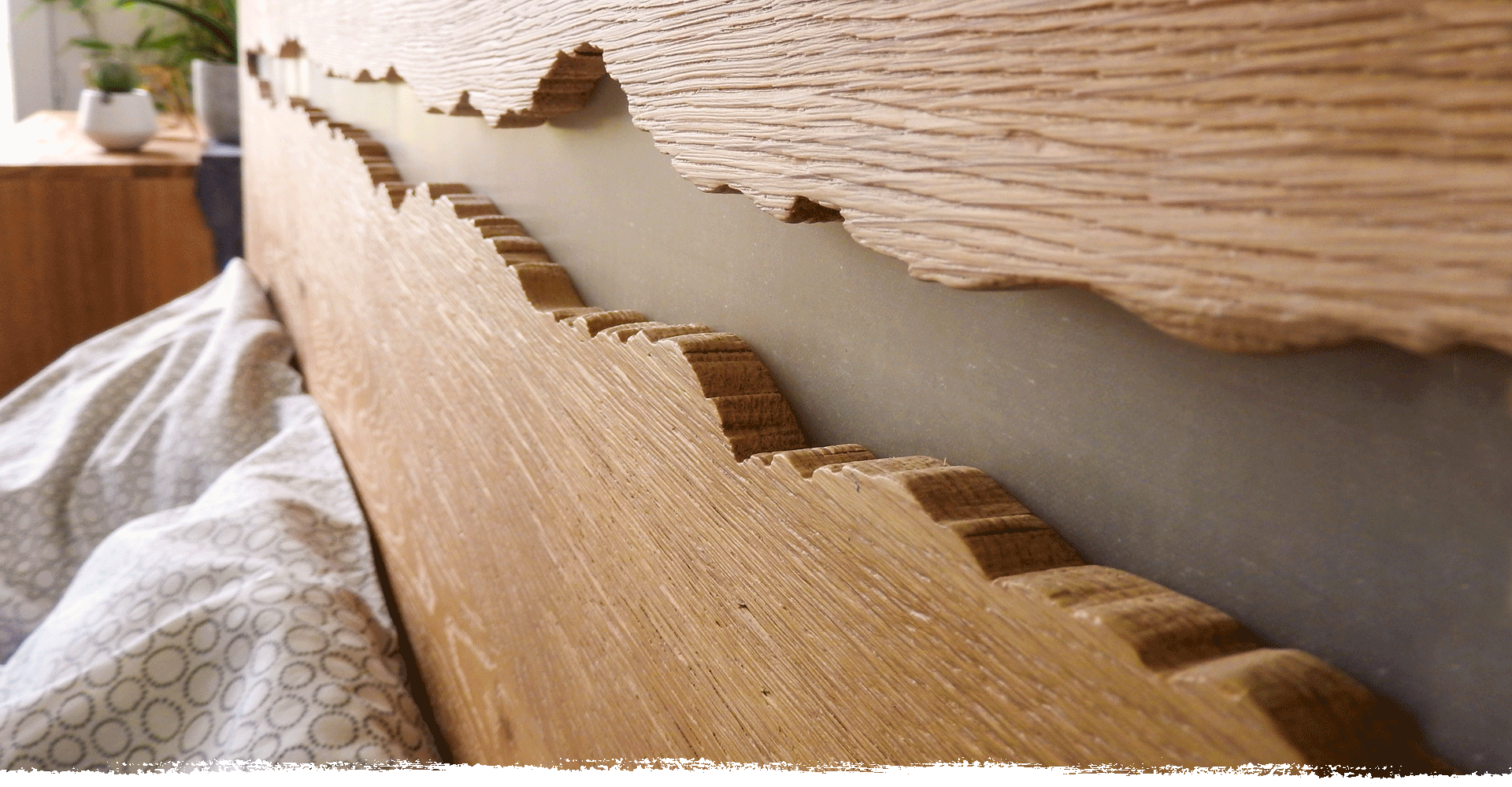 Le lit CRAKEL apporte ainsi à votre intérieur  une empreinte naturelle et intemporelle aux effets changeants.