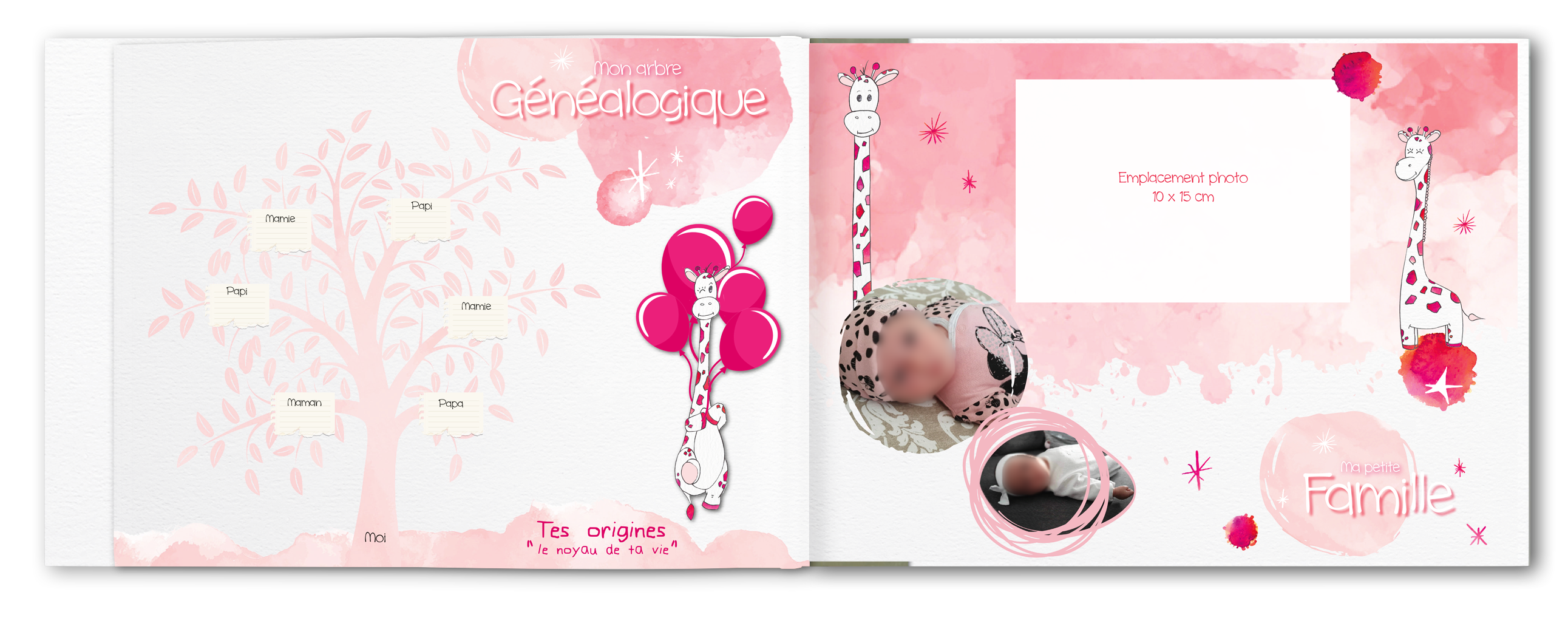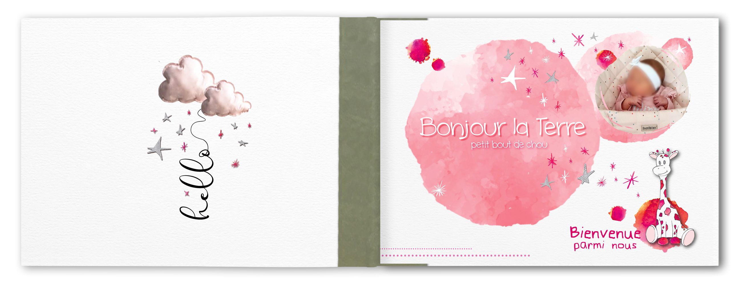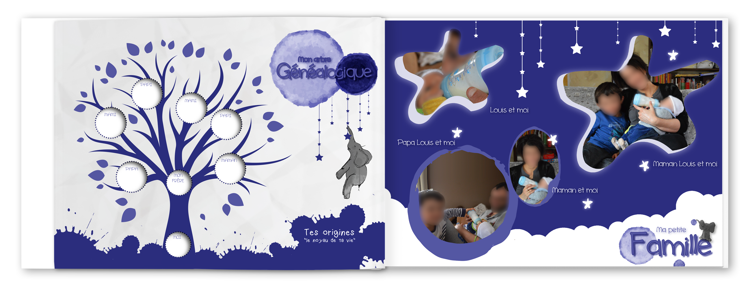 Nous pouvons aussi réaliser ensemble un livre unique dans le thème et les couleurs de votre choix et intégrer les photos à la mise en page.