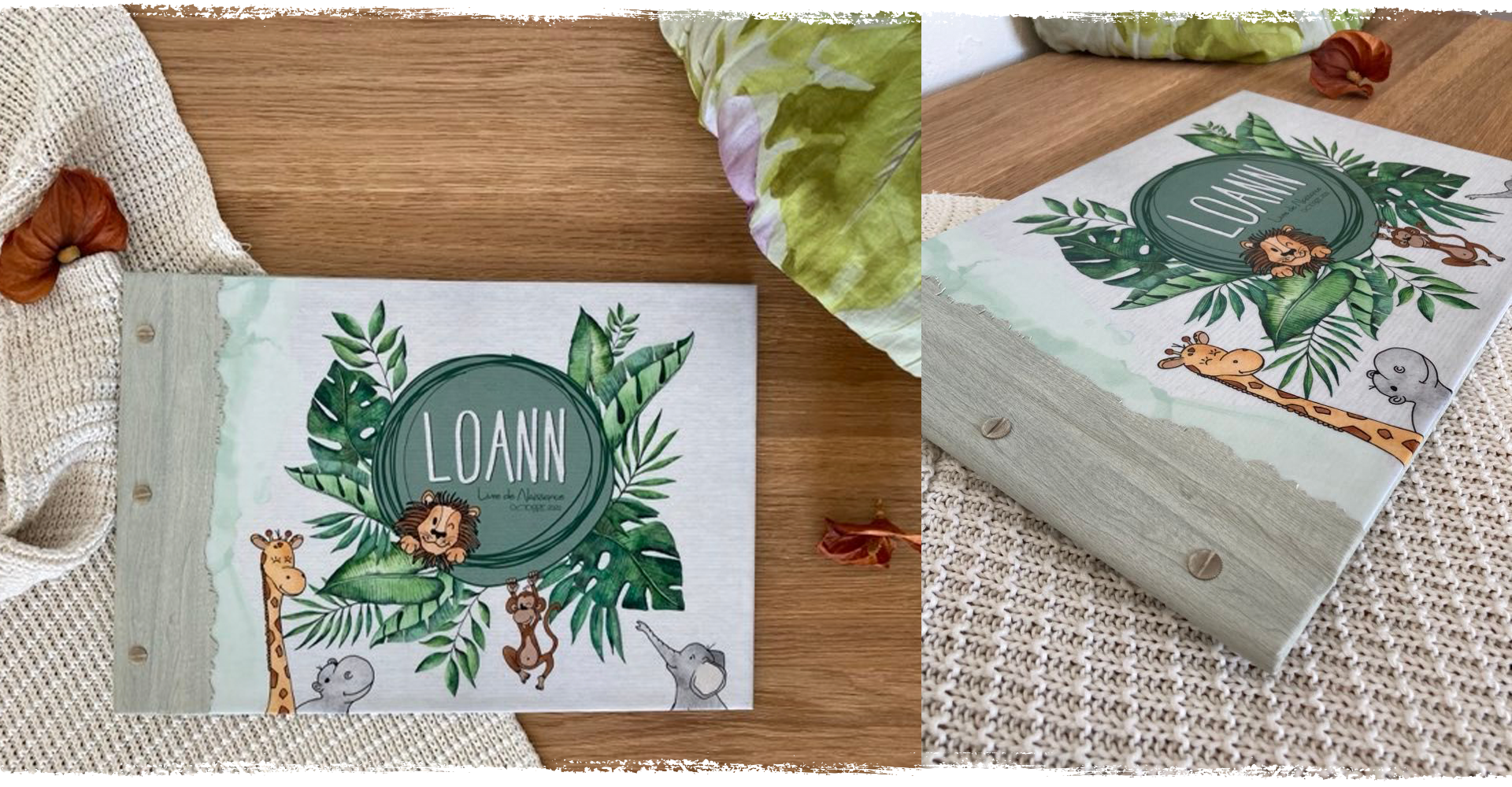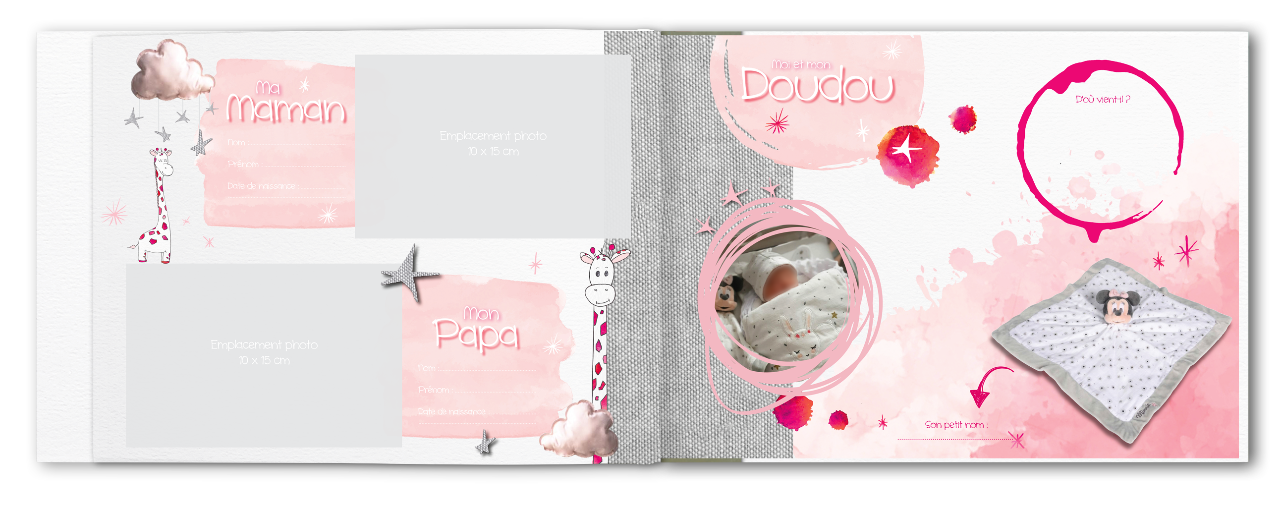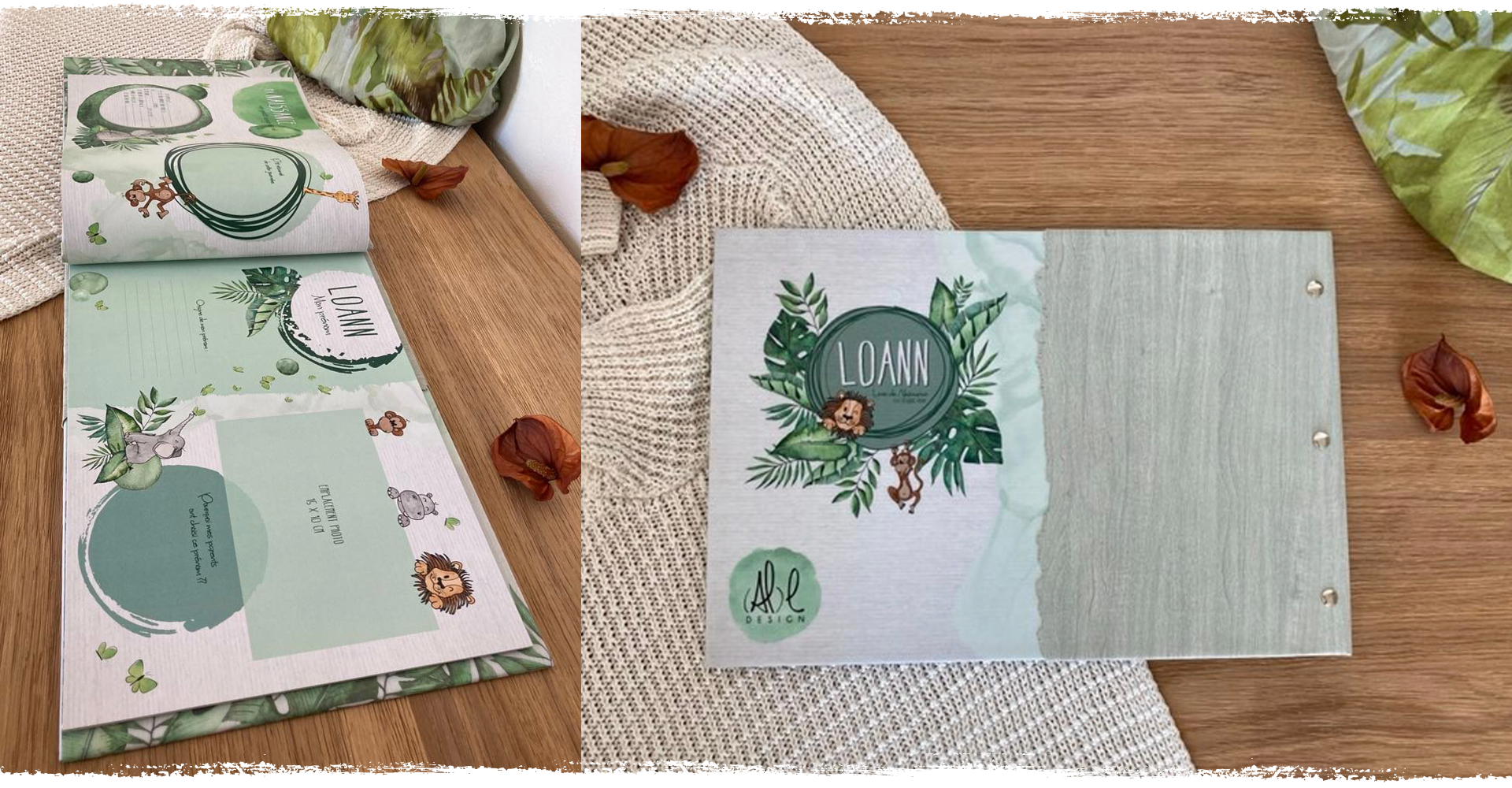 Nous pouvons aussi réaliser ensemble un livre unique dans le thème et les couleurs de votre choix et intégrer les photos à la mise en page.