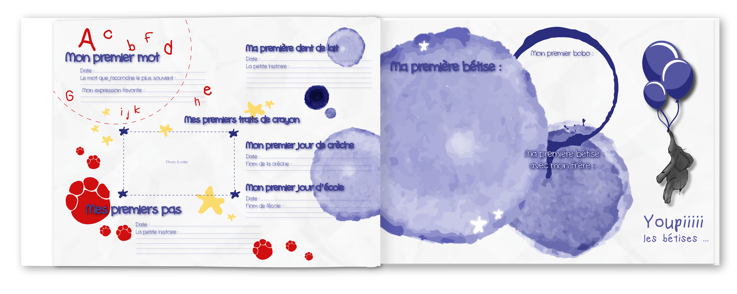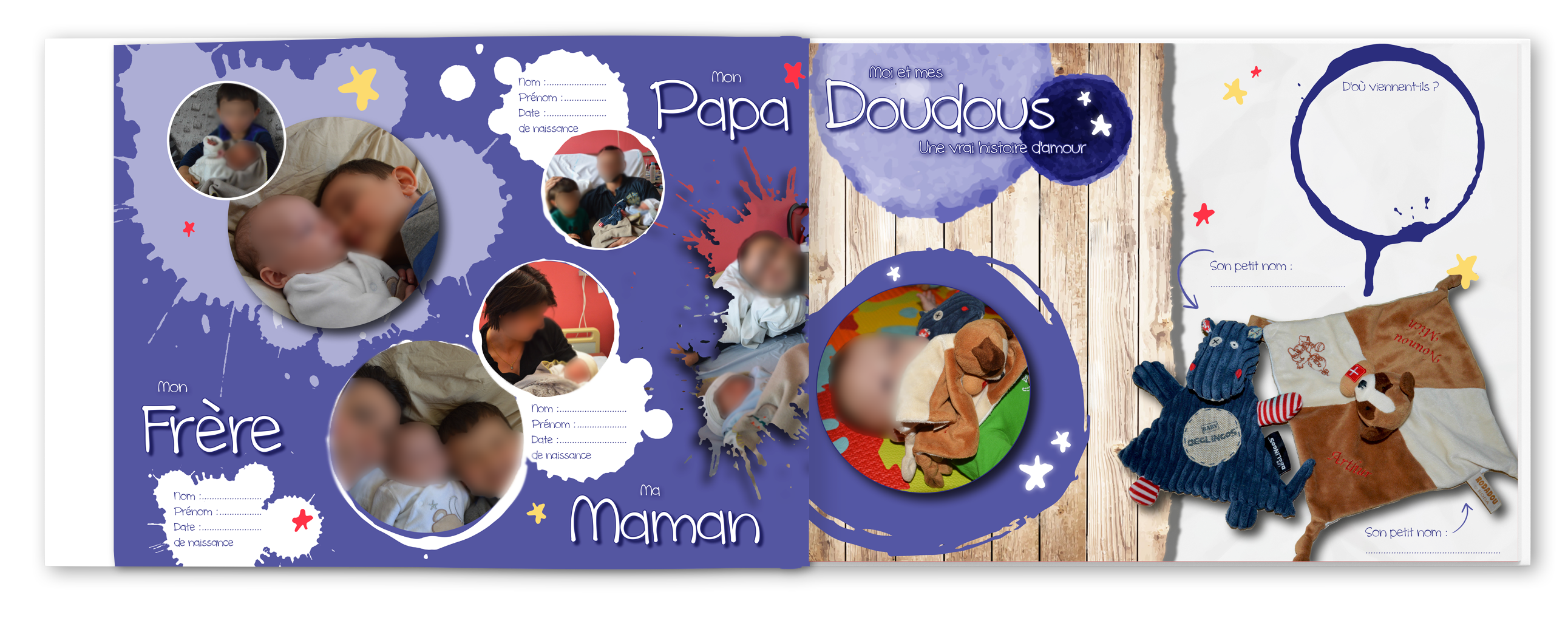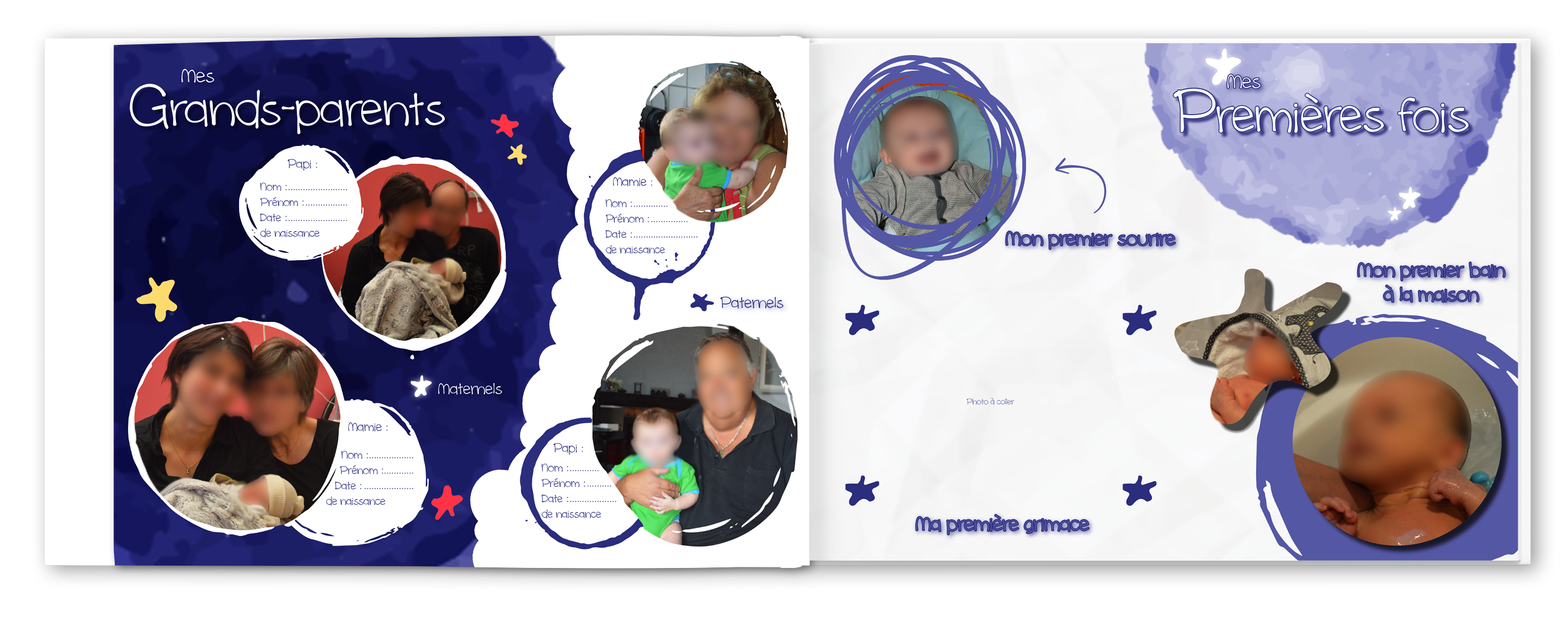 Pour ne rien oublier des ses premières fois compilez vos souvenirs les plus précieux dans un livre de naissance et partagez les avec eux. Ses plus beaux portraits, sa famille, ses premières fois, l’histoire de son prénom, son doudou…