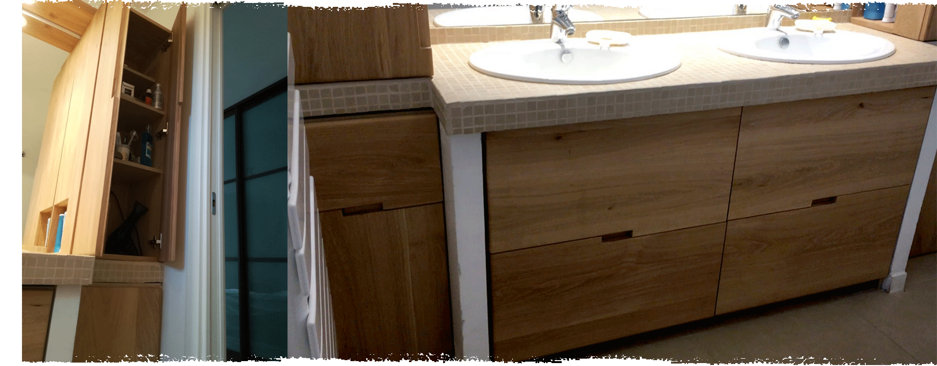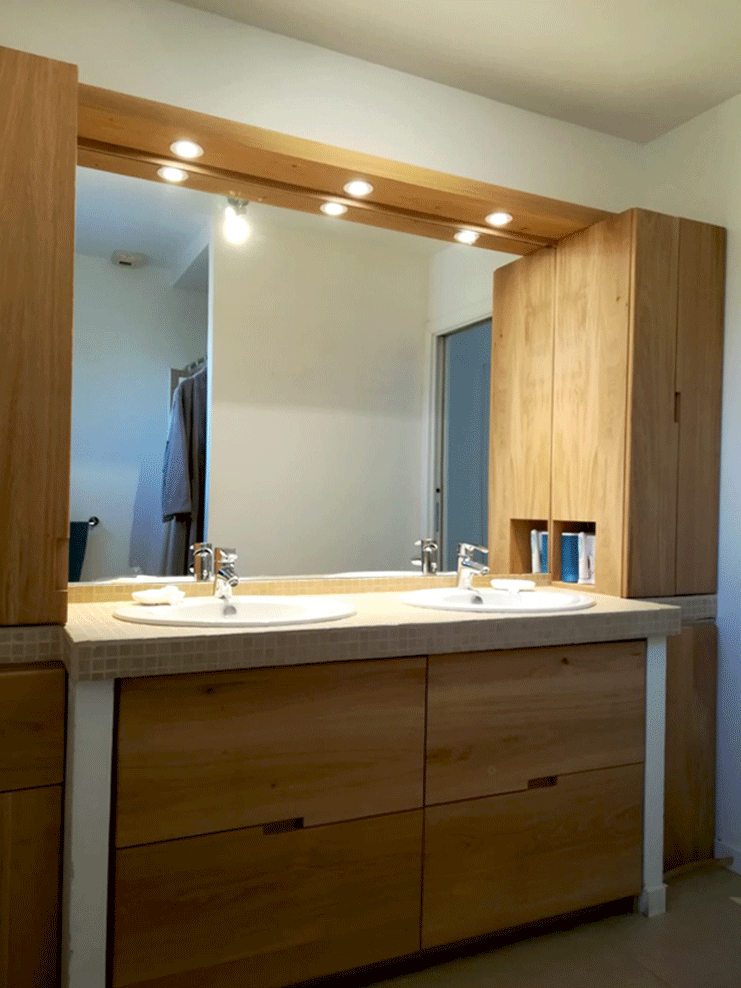 https://alldesign-product.fr/wp-content/uploads/2022/04/SUR-MESURE-SALLE-DE-BAIN-VIDEO-1.mp4 Salle de bain Aménagement de salle de bain réalisé entre un plan de travail et deux bâtis existants. Mobilier en chêne massif fonctionnel, épuré et élégant – poignées intégrées. Réalisation sur mesure Donner vie à vos envies et vos projets